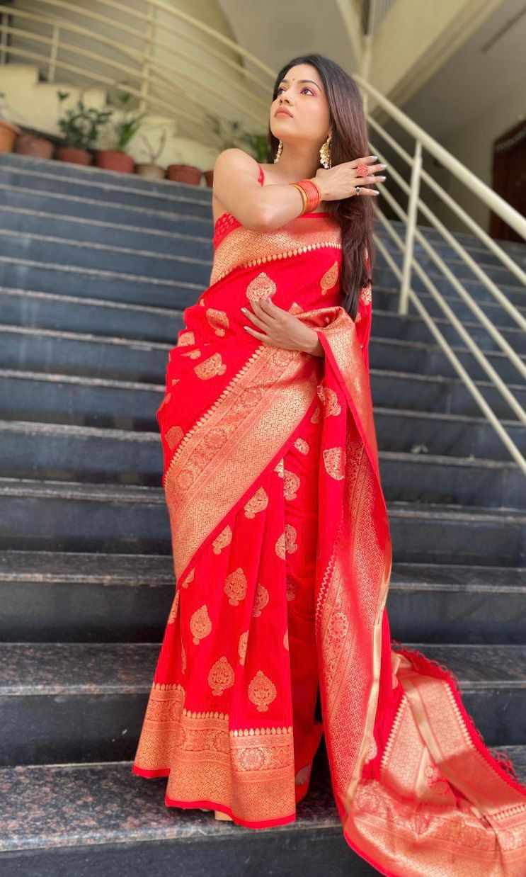 Name : MF 1610 RED SOFT LICHI SILK SAREE