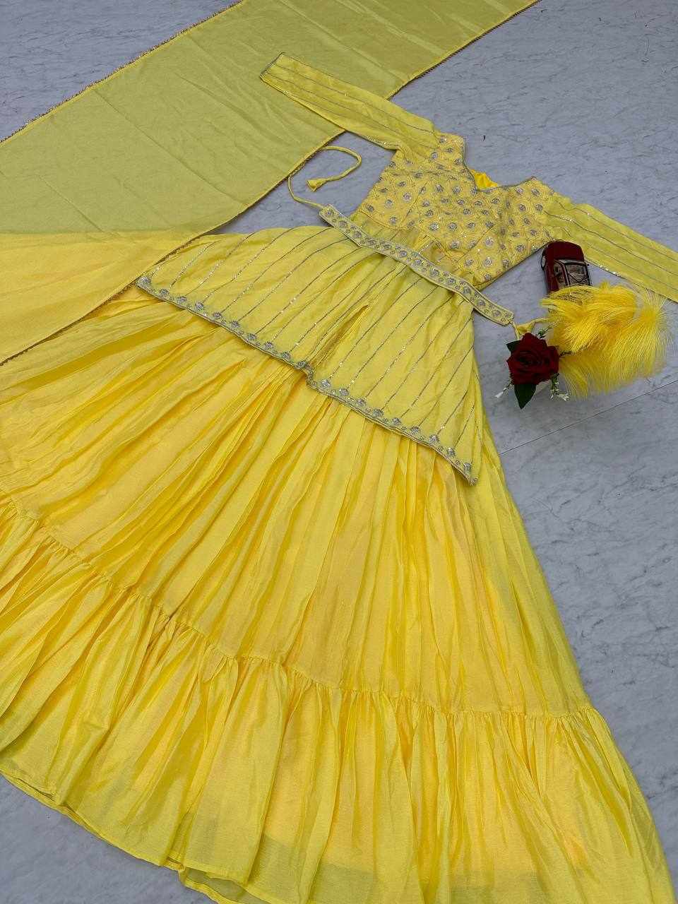 | Name : | Pc 434 Yellow Chinon Sequence Work Lehenga |