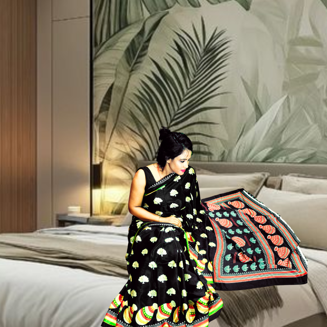 S4S Turkey print black Pot Tree Saree