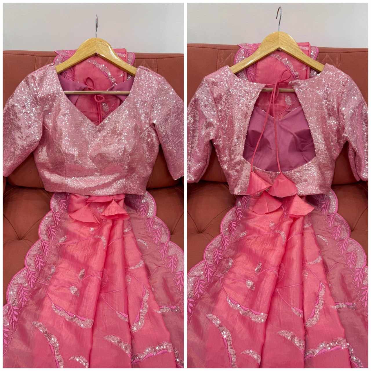 | Name : | SP 19 Pink Gold Crush Sequnce work Saree |
